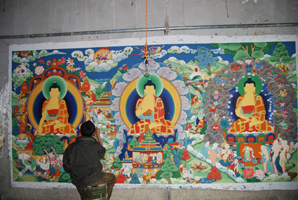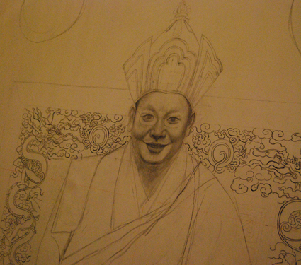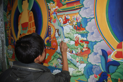 Shartul Rinpoche commissioned Thangka artists from Lhasa to draw the murals for the 600 years old Phodrang Monastery located Eastern Tibet.